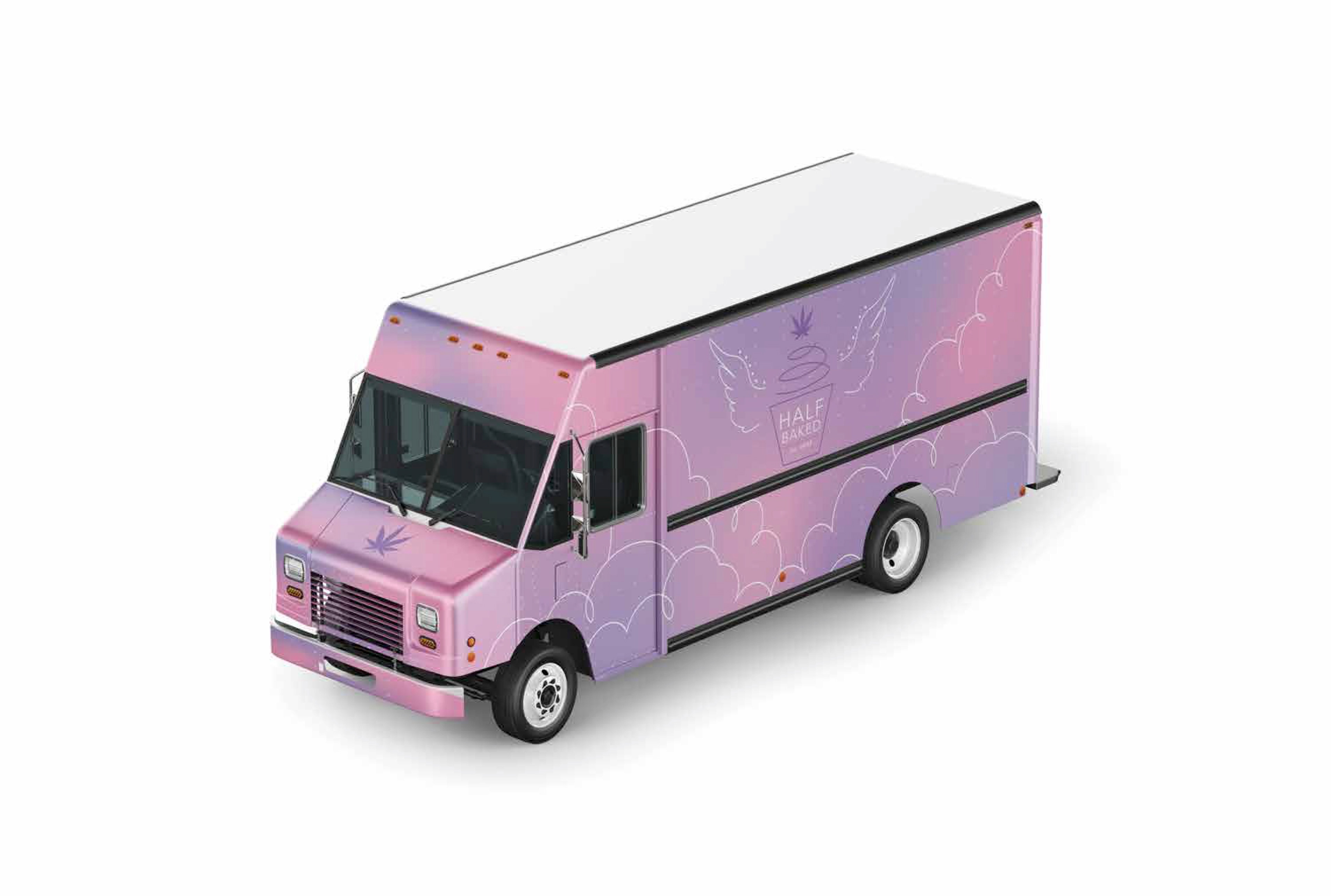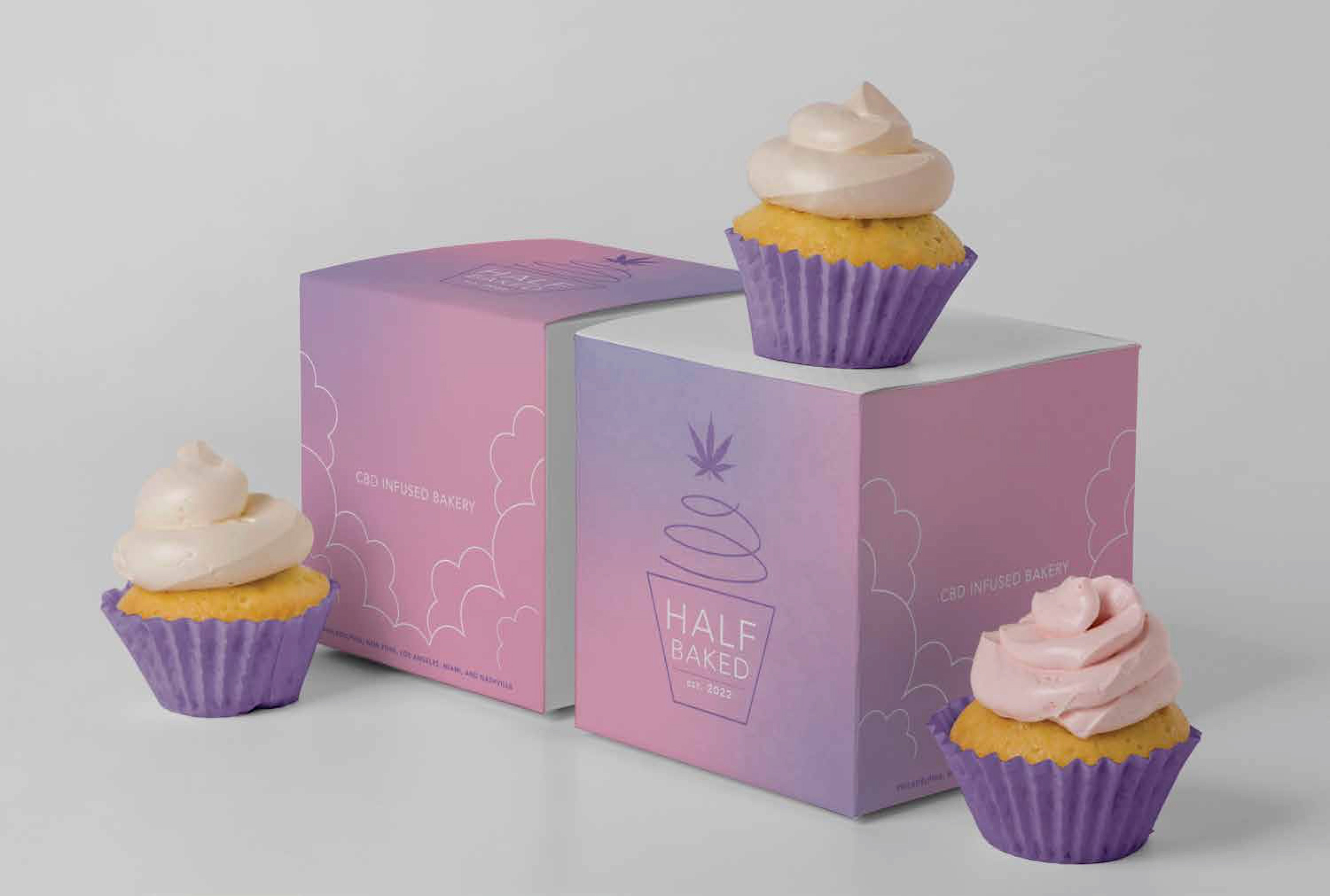 Half Baked is a fictional food truck concept that joins together baked goods and CBD. Having a dreamy cloud theme, the baked goods from Half Baked will have consumers on Cloud 9.